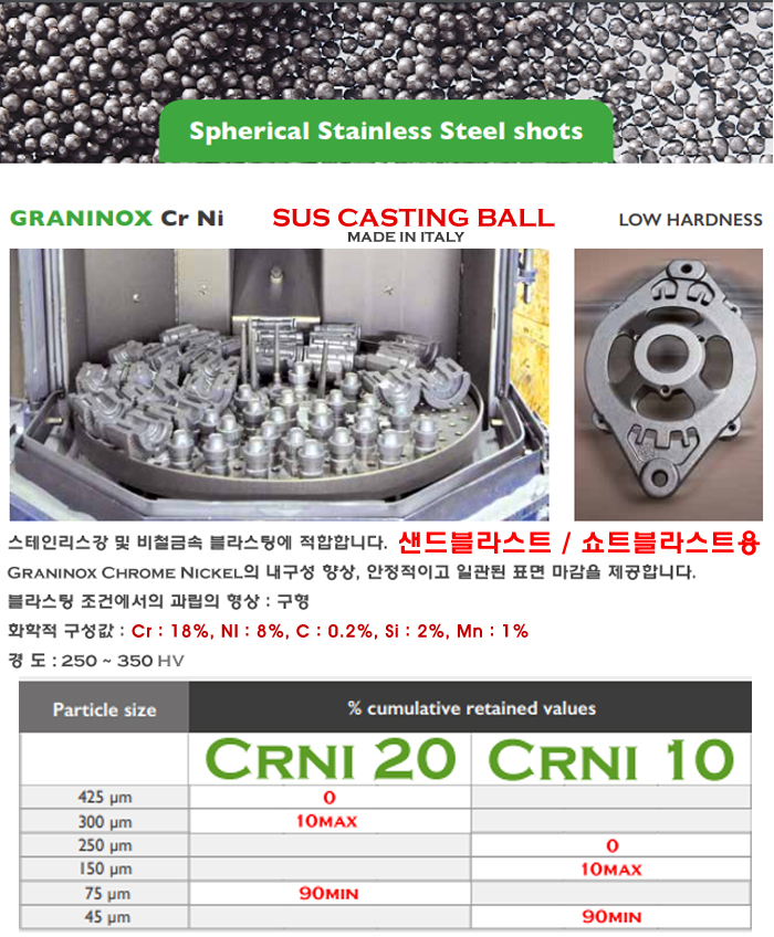 이태리산 서스볼 CRNI-10 0.045~0.15mm 25Kg /샌드블라스트/샌딩가루/스텐볼/이태리산/SUS/쇼트볼